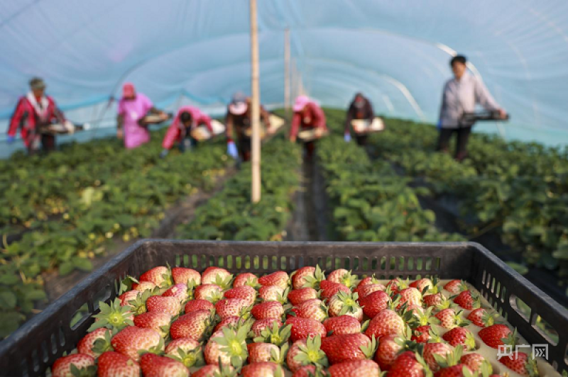 江蘇泰州:草莓種植讓農(nóng)民收獲甜日子