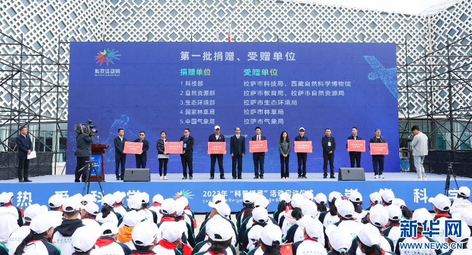 國(guó)家林草局科技司帶隊(duì)出席啟動(dòng)儀式,并組織有關(guān)單位向拉薩市林草局捐贈(zèng)林草科普物資。(新華社發(fā) 宋平 攝)
