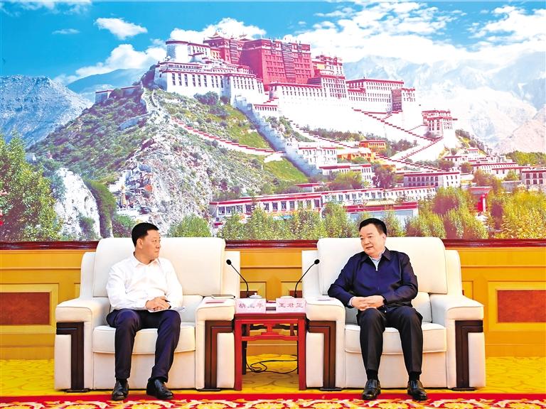 9月9日至13日,吉林省黨政代表團(tuán)來(lái)藏考察。自治區(qū)黨委書記王君正與吉林省委副書記、省長(zhǎng)胡玉亭一行座談。