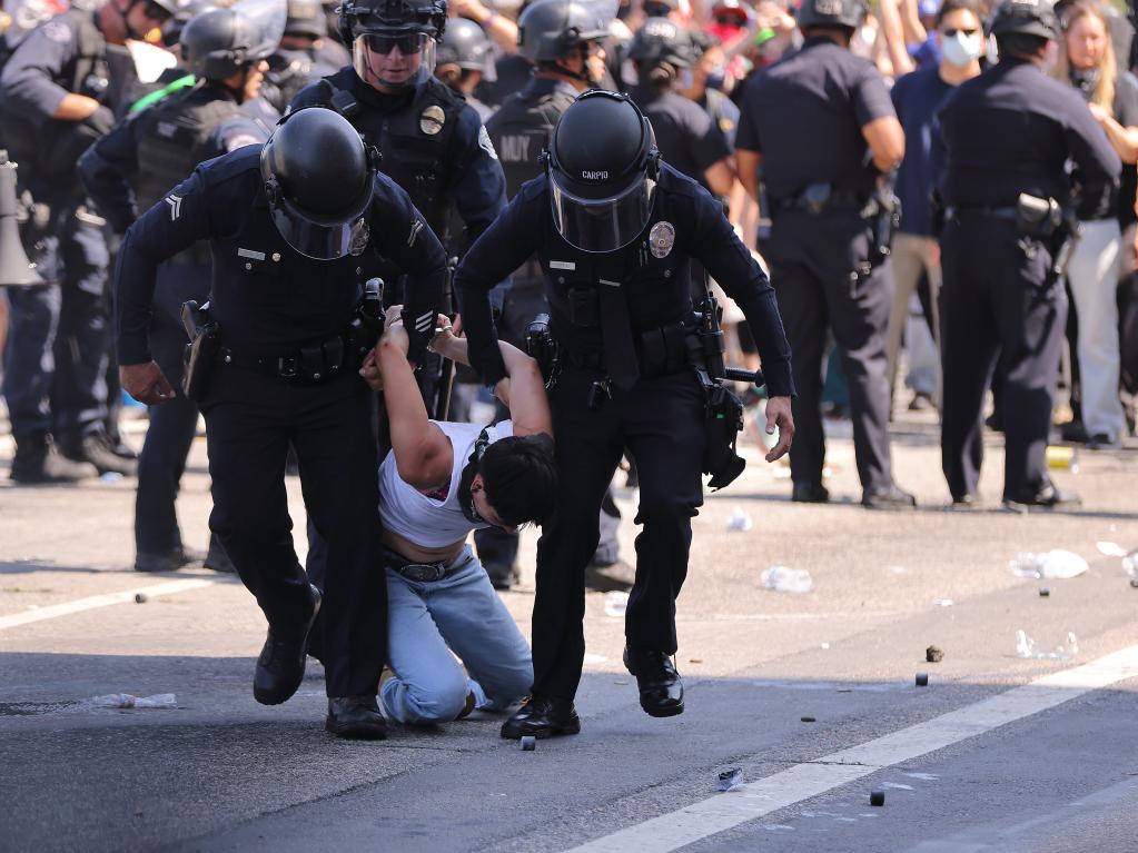 8日,抗議者與特朗普政府派遣到洛杉磯的國民警衛(wèi)隊、聯(lián)邦機(jī)構(gòu)執(zhí)法人員和當(dāng)?shù)鼐炖^續(xù)發(fā)生大規(guī)模沖突。8日中午,特朗普政府邊境事務(wù)主管湯姆·霍曼表示,將繼續(xù)在南加州地區(qū)實施針對非法移民的嚴(yán)打行動,“任何阻撓者”都將被逮捕,包括紐森和洛杉磯市長巴斯。