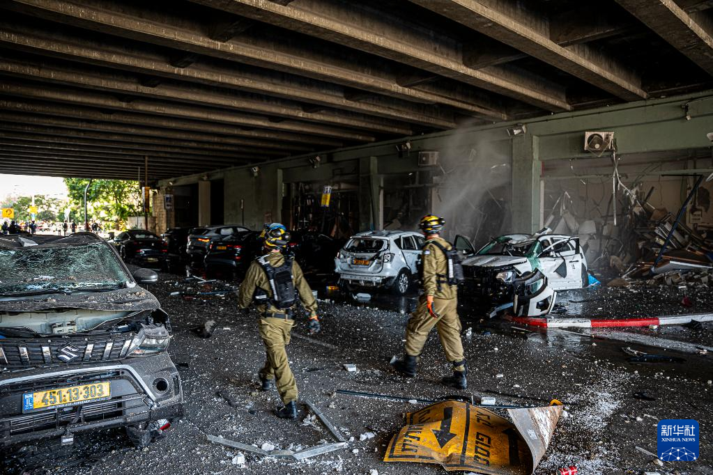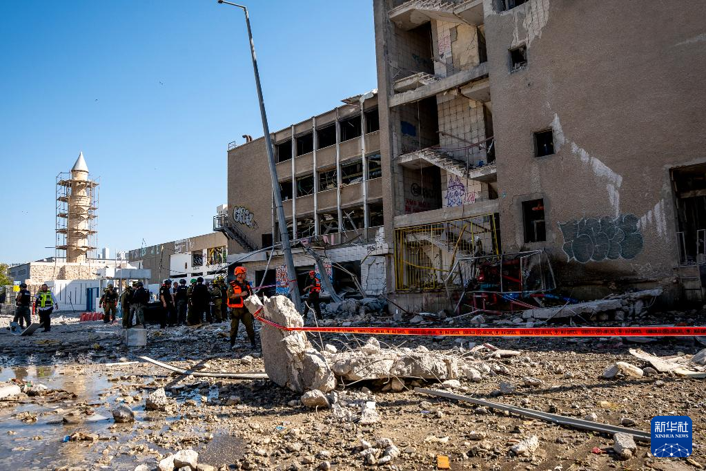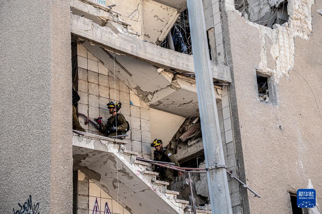 6月20日,安全和救援人員在以色列北部海法的導(dǎo)彈襲擊現(xiàn)場工作。新華社/基尼圖片社