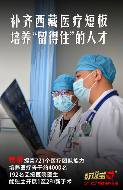 醫(yī)療人才“組團式”援藏實施以來,共幫帶721個醫(yī)療團隊、2031名本地醫(yī)務(wù)人員、培養(yǎng)醫(yī)療骨干約4000名,已有192名受援醫(yī)院的醫(yī)生能獨立開展1種至2種新手術(shù),實現(xiàn)了400多種較大疾病不出藏,大多數(shù)“中病”不出市(地)就能得到治療。