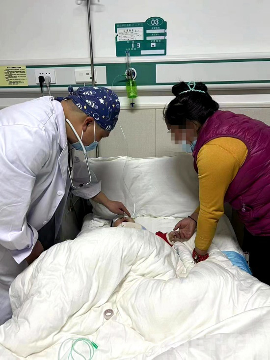 手術(shù)順利結(jié)束,看著醫(yī)護人員把才巴央措從手術(shù)室推出來,母親卓巴雙手合十并不停對著醫(yī)護人員說 “噶真切”“噶真切”,醫(yī)護人員也面帶欣慰的微笑,用一兩句簡單的藏語回應著卓巴,看著病床上熟睡的才巴央措,卓巴輕撫孩子臉頰哽咽落淚。