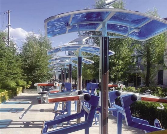 為什么要說它們智能呢?原來,如雙位漫步機、雙位蹬力器、雙位背部訓(xùn)練器、雙位健身車器材,均采用太陽能供電系統(tǒng),為LED燈提供夜間照明,以及為運動數(shù)據(jù)采集、處理提供能源,加遮陽棚并與安裝環(huán)境相融合。同時,這些器材具備數(shù)據(jù)統(tǒng)計和數(shù)據(jù)處理功能,讓健身者在運動的同時實時了解自己的健身數(shù)據(jù),更好地規(guī)劃健身運動的方式,讓力量訓(xùn)練更科學(xué)、有效。此外,器材還可以通過顯示屏、微信小程序或手機APP進(jìn)行在線視頻訓(xùn)練指導(dǎo)。