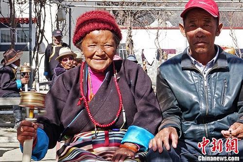 西藏山南市加查縣五保集中供養(yǎng)中心免費(fèi)為125位老人提供衣、食、住、行、醫(yī)、樂等各項(xiàng)服務(wù)。加查縣民政局工作人員將其形容為“銀發(fā)暖巢”。圖為藏族老人妮妮與“老伴兒”歐珠。中新社記者孫翔攝