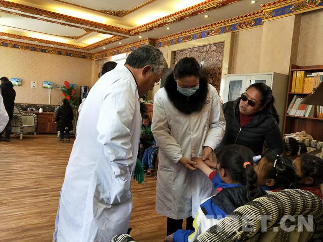 圖為次仁卓瑪(左)在為老人進行體檢。
