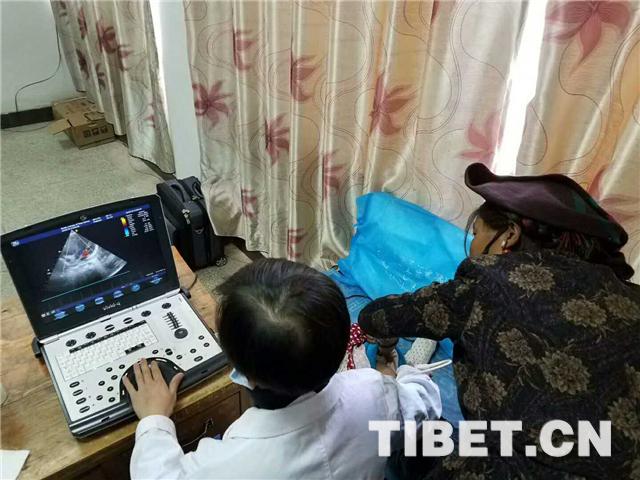 圖為北京安貞醫(yī)院醫(yī)生為拉孜縣先心病疑似患兒確篩。