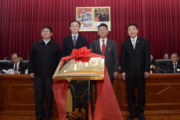 圖為西藏自治區(qū)衛(wèi)生和計(jì)劃生育委員會(huì)黨組成員、副主任胡學(xué)軍,上海市衛(wèi)生和計(jì)劃生育委員會(huì)主任鄔驚雷,西藏自治區(qū)人民政府副主席、日喀則市委書記張延清,上海市第八批援藏干部聯(lián)絡(luò)組組長(zhǎng)、日喀則市委副書記、常務(wù)副市長(zhǎng)倪俊南(從左至右)為日喀則市人民醫(yī)院掛牌三級(jí)甲等醫(yī)院 解放日?qǐng)?bào) 曹磊攝