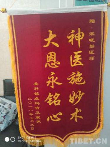 圖為患者家庭贈予宋曉靜的錦旗 圖片由夏河縣醫(yī)院提供