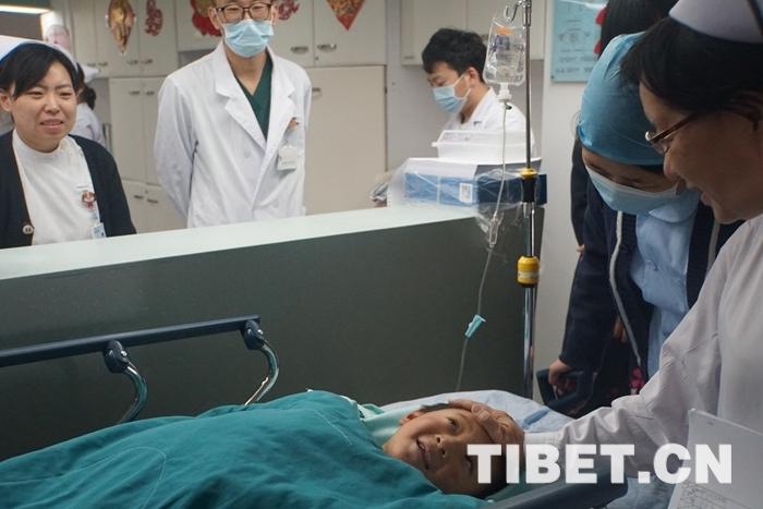 “老婆,兒子手術(shù)結(jié)束啦,很成功,放心吧。”看到兒子平安地從手術(shù)室出來,丁子扎西第一時(shí)間向妻子致電,“孩子?jì)寢屢诩依镎疹櫞髢鹤舆€有八十多歲的奶奶,所以沒有一起來,她要是來的話??隙〞?huì)哭。”孩子手術(shù)成功,丁子扎西終于可以完全放松了。