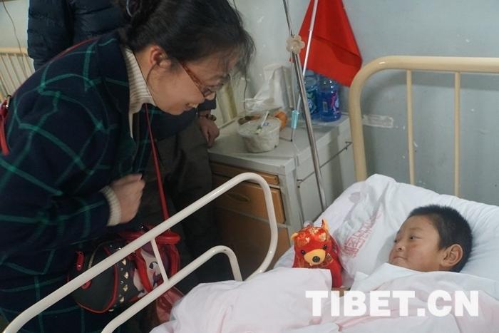 中國(guó)西藏網(wǎng)訊 “我們叫‘刀旦’,但是一點(diǎn)兒都不‘搗蛋’,今天表現(xiàn)真棒,阿姨再獎(jiǎng)勵(lì)給你一個(gè)玩具?!睂?duì)中日友好醫(yī)院的護(hù)士們來說,這個(gè)來自遠(yuǎn)方的藏族孩子,懂事得讓她們心疼?!傲鶜q的孩子,不管打針、輸液,還是做各種檢查,一次都沒哭過,我們看著都特別窩心?!必?fù)責(zé)照顧蘇奴刀旦的護(hù)士們都對(duì)這個(gè)小小男子漢疼愛有加。