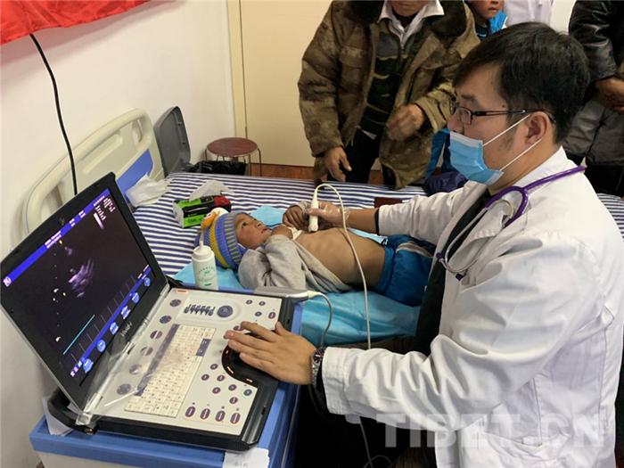 在丁青縣人民醫(yī)院,只用兩臺(tái)儀器便承擔(dān)起聽(tīng)診任務(wù)的安貞醫(yī)院小兒心臟外科副主任醫(yī)師劉承虎,正安撫在家長(zhǎng)懷里哭泣不止、僅有2歲多的益西貢培。小家伙兒似乎有些恐懼即將面臨的一切,而他的家長(zhǎng)也有些手足無(wú)措,臉上寫滿了歉意。劉承虎并沒(méi)有介意,他和藹地安撫哭泣的孩子,保持著高度的耐心,等孩子平靜下來(lái),再為他進(jìn)行聽(tīng)診,力求讓孩子保持平靜,確保結(jié)果準(zhǔn)確?!斑@個(gè)孩子心跳聽(tīng)起來(lái)不太正常,快讓他去接受檢查吧。”就這樣,又一名患兒得到了救治的機(jī)會(huì)。“還有沒(méi)聽(tīng)診的孩子么?”劉承虎向邊上的工作人員確認(rèn)已經(jīng)沒(méi)有等待聽(tīng)診的孩子后,起身來(lái)到病房外確認(rèn)沒(méi)有了等候的孩子,便立刻進(jìn)入超聲檢查室,拿起紙筆,開(kāi)始幫助同伴進(jìn)行患兒病情的記錄。每當(dāng)有人讓他去休息時(shí),他總是說(shuō)“沒(méi)事,我們是專業(yè)的,記錄得更清楚。”往往一站就要站到檢查結(jié)束,但他從未有過(guò)一句怨言。