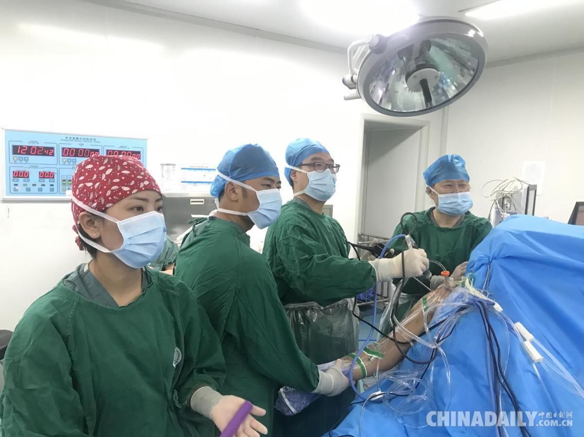 程序醫(yī)生和西藏自治區(qū)人民醫(yī)院醫(yī)生一道開展肩袖撕裂鏡下手術(shù)。中國(guó)日?qǐng)?bào)達(dá)窮攝