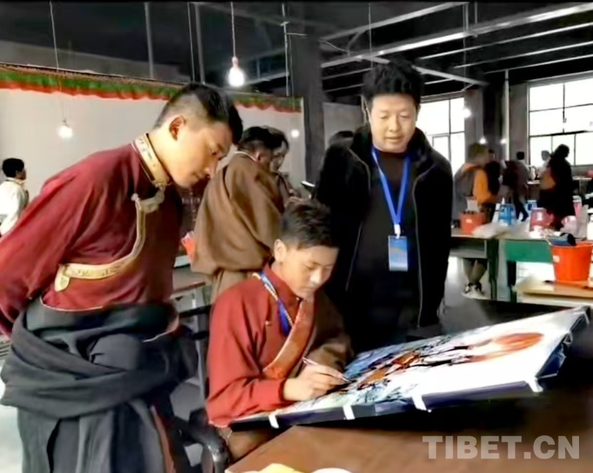 圖為朗杰參加唐卡繪畫(huà)技藝市民公開(kāi)傳習(xí)活動(dòng)