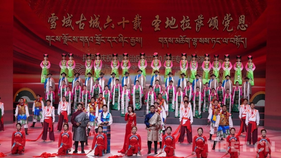 中國(guó)西藏網(wǎng)訊 9月11日晚,“雪域古城六十載·圣地拉薩頌黨恩”拉薩市慶祝西藏自治區(qū)成立60周年專(zhuān)場(chǎng)慰問(wèn)演出在金城公主劇場(chǎng)上演。