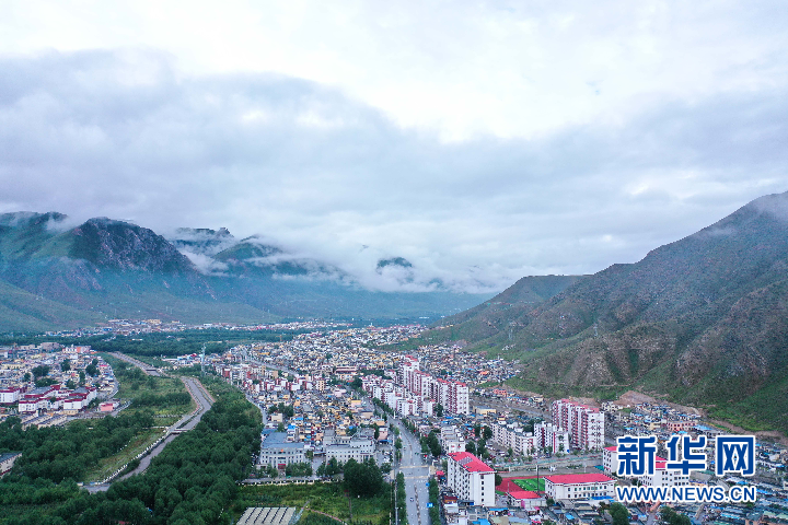 這是2021年8月7日拍攝的玉樹市城區(qū)(無人機(jī)照片) 新華社記者 吳剛 攝