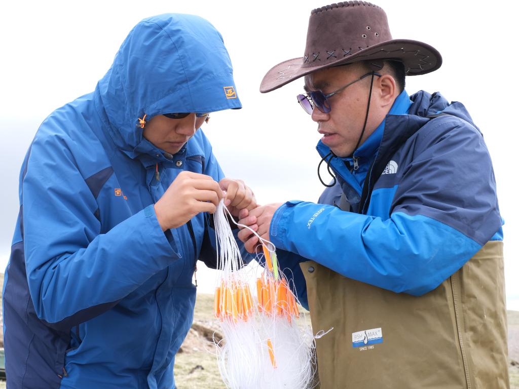 6月12日,李偉(右)和助手王馳繹在長江南源當(dāng)曲河畔做采樣準(zhǔn)備工作。新華社記者 童昊 攝