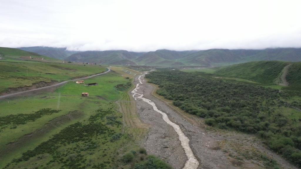 這是7月12日在玉樹市巴塘鄉(xiāng)拍攝的相古村夏日景象(無人機(jī)照片)。新華社記者 范培珅 攝