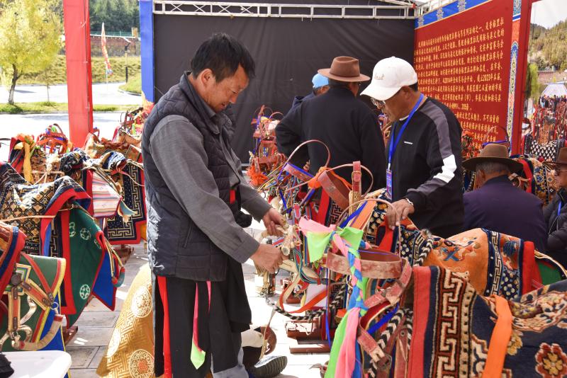 10月30日,由州委、州政府主辦的世界的“香格里拉”金秋賽馬節(jié)民間鞍馬具展示交流活動(dòng)在香格里拉市民族體育中心綜合體育場(chǎng)舉辦。圖為鞍馬具愛(ài)好者在現(xiàn)場(chǎng)參觀。