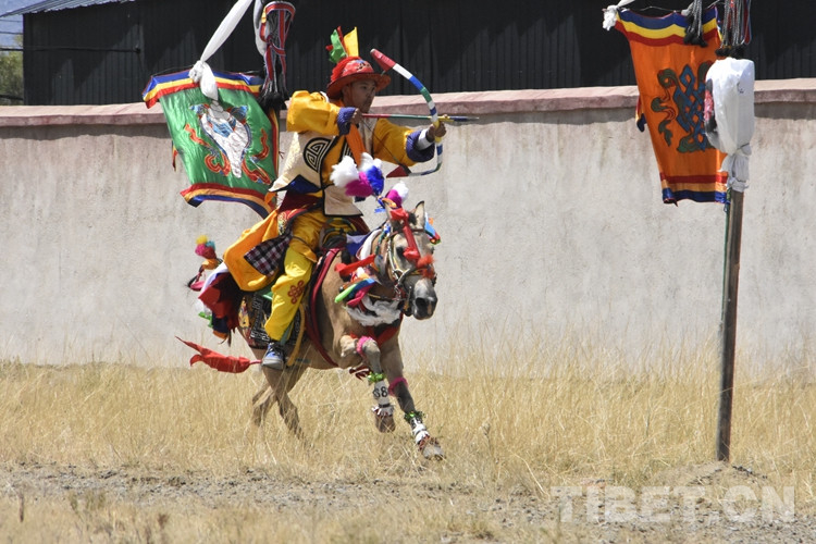 伴隨著一聲令下,騎手們駕著馬匹風馳電掣般在賽道上飛奔,有的一邊騎馬一邊拉弓搭箭,準確地射中箭靶;有的在騎馬過程中展示俯身撿物等特技動作,引來陣陣喝彩聲。賽馬結(jié)束,一條條潔白的哈達、一杯杯青稞酒,獻給英勇的騎手,表達村民真誠的禮贊與祝福。(中國西藏網(wǎng) 記者/拉姆 實習生德吉卓嘎)