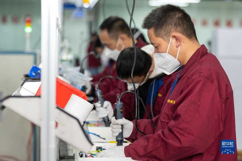 工人在電器裝配生產線上作業(yè)(2022年11月28日攝)。新華社記者周荻蕭 攝