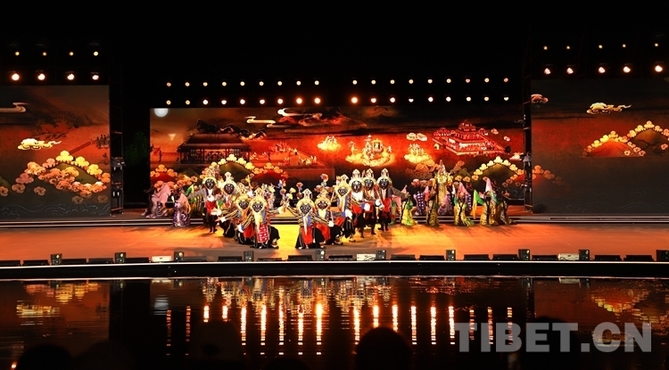 當(dāng)晚開(kāi)幕式文藝演出共分為序《雪頓新韻》、上篇《相約雪頓》、下篇《心約拉薩》和尾聲《百年雪頓》四部分,整場(chǎng)文藝演出融合歌曲、舞蹈、藏戲、京劇、昆曲、街舞等元素,并以半實(shí)景的舞臺(tái)藝術(shù)形式上演《百年雪頓》等節(jié)目,線上線下呈現(xiàn)了一臺(tái)傳統(tǒng)與現(xiàn)代交相輝映、傳承與創(chuàng)新和諧相融、歷史與未來(lái)一脈相承的文藝盛宴。