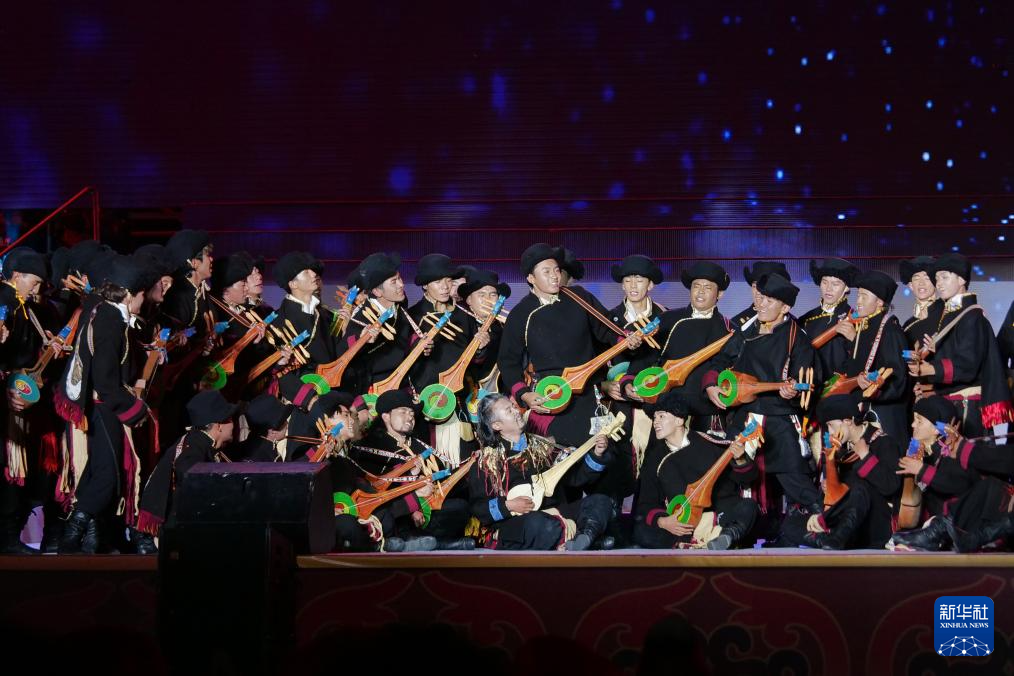 第八屆象雄文化旅游節(jié)開(kāi)幕式現(xiàn)場(chǎng)的文藝表演(8月21日攝)。新華社記者 劉文博 攝