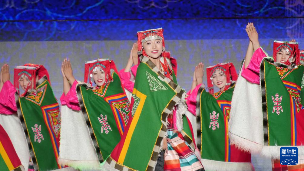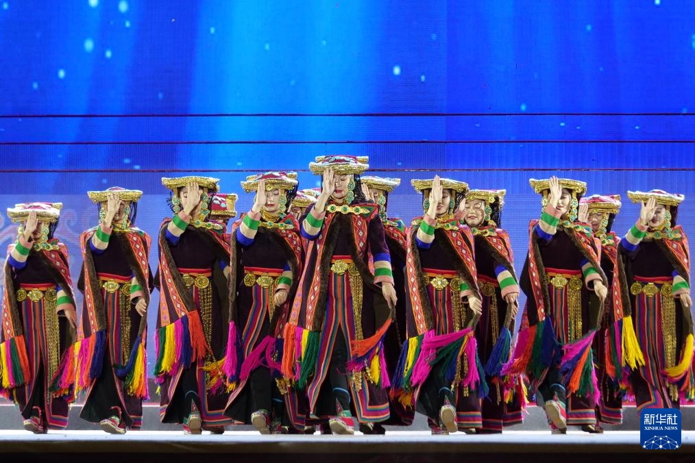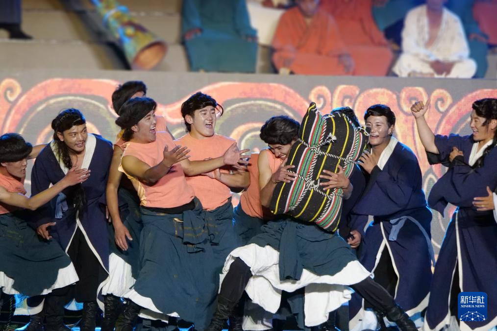 第八屆象雄文化旅游節(jié)開(kāi)幕式現(xiàn)場(chǎng)的文藝表演(8月21日攝)。新華社發(fā)(旦增努布攝)