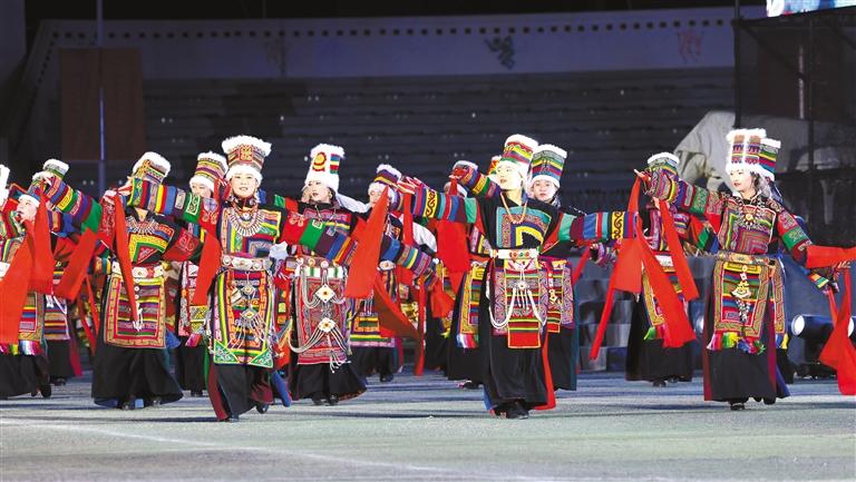 圖為第八屆象雄文化旅游節(jié)開(kāi)幕式文藝演出現(xiàn)場(chǎng)。記者 溫凱 攝