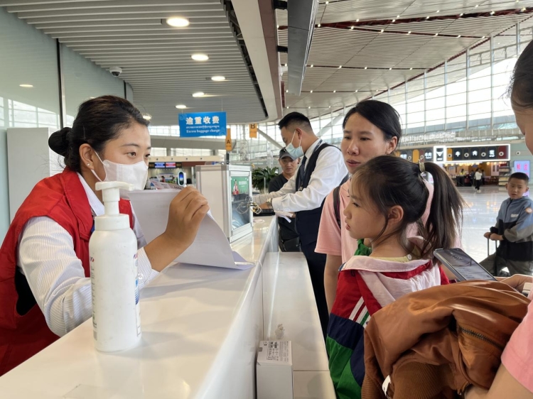 圖為“暑運(yùn)”期間拉薩貢嘎機(jī)場為旅客提供“無陪兒童”服務(wù)