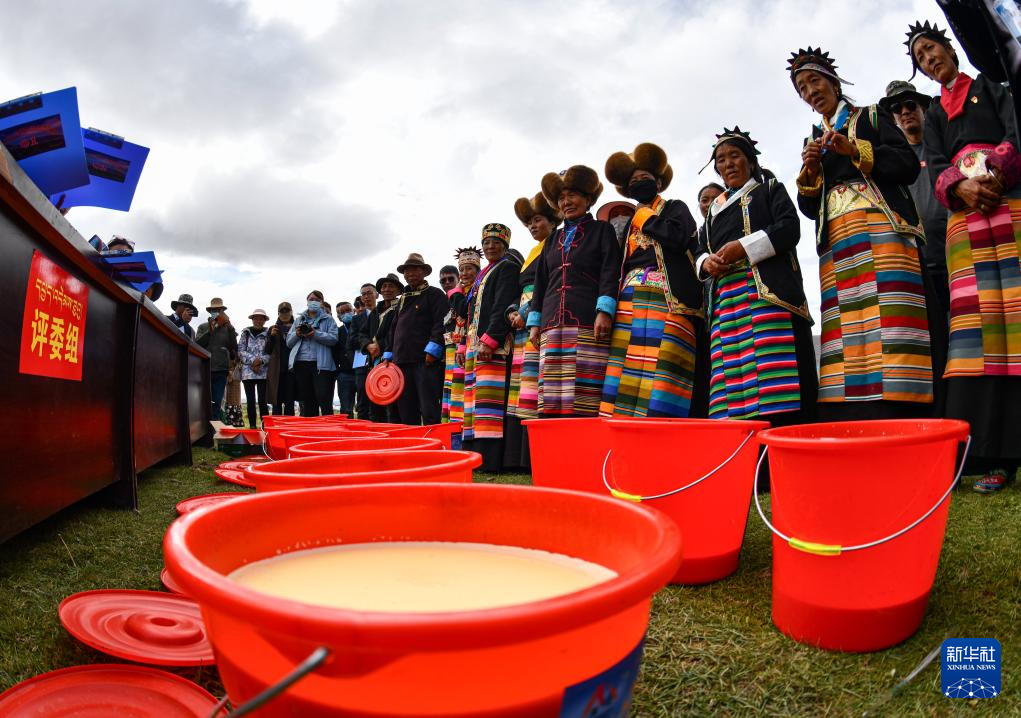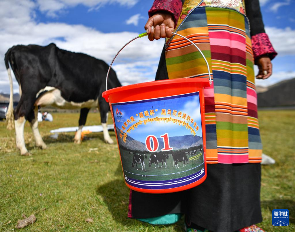 9月23日,參賽選手提著剛擠的牛奶前往稱重臺稱重。新華社記者 晉美多吉 攝 ??
