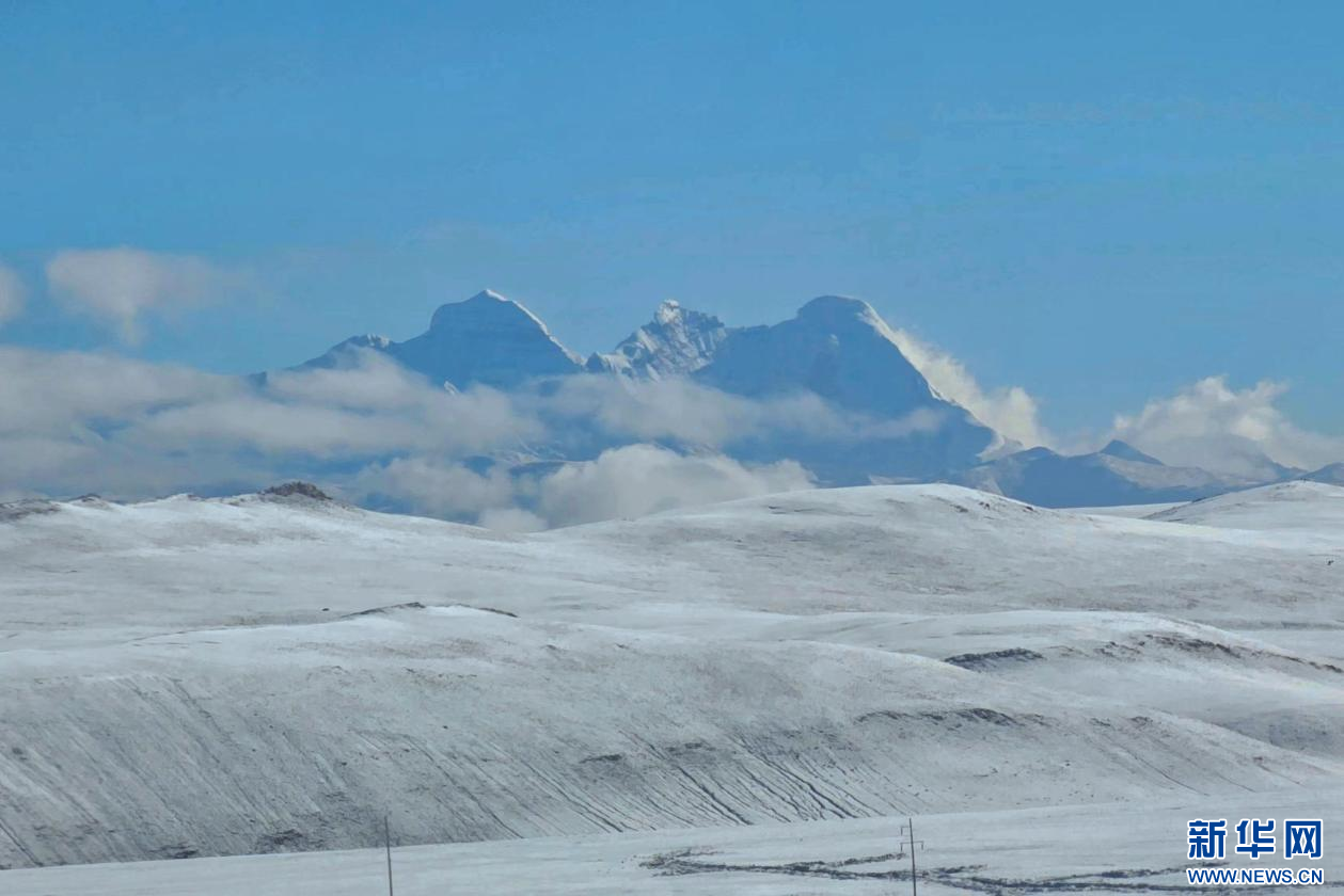 10月13日遠眺雪中哲古湖。新華網(wǎng) 柑丹鴦琦 攝