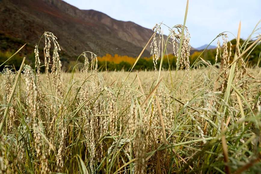 這片金燦稻谷得來(lái)極為不易?!爱?dāng)初,為了選育適合高原的水稻,我們經(jīng)歷了很多坎坷。”西藏自治區(qū)農(nóng)牧科學(xué)院農(nóng)業(yè)研究所副研究員范春捆告訴記者,他們從2019年開(kāi)始試種水稻,但一直沒(méi)有成功。2020年9月3日下午,他和妻子在田間散步時(shí)意外發(fā)現(xiàn)一株結(jié)實(shí)的稻穗。“當(dāng)時(shí)我太激動(dòng)了,跳到稻田里仔細(xì)一看,果然,一株雜合體水稻結(jié)了果!”