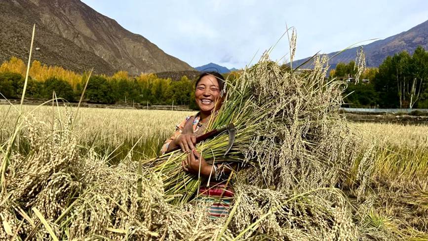 “能吃上自家種植的大米,以前這種事情想都不敢想?!必S收的喜悅洋溢在村民卓嘎臉上。她說(shuō),如今能吃上自家種的大米,非常開(kāi)心,非常有成就感!