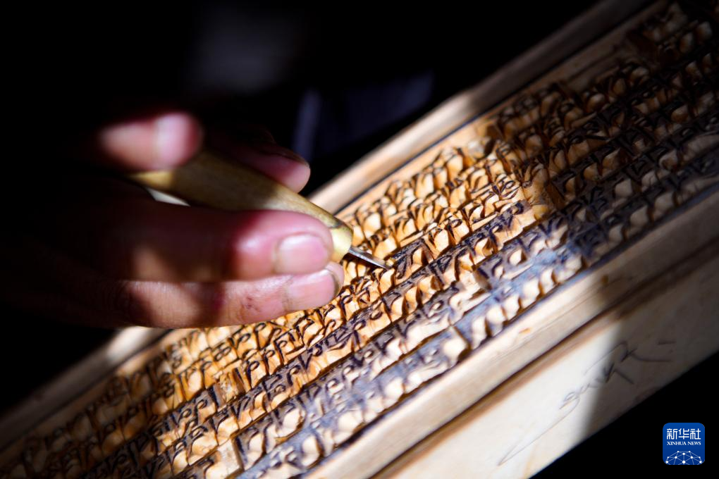 木松民族手工藝公司的工人正在制作木刻(2023年10月27日攝)。新華社記者邵澤東 攝