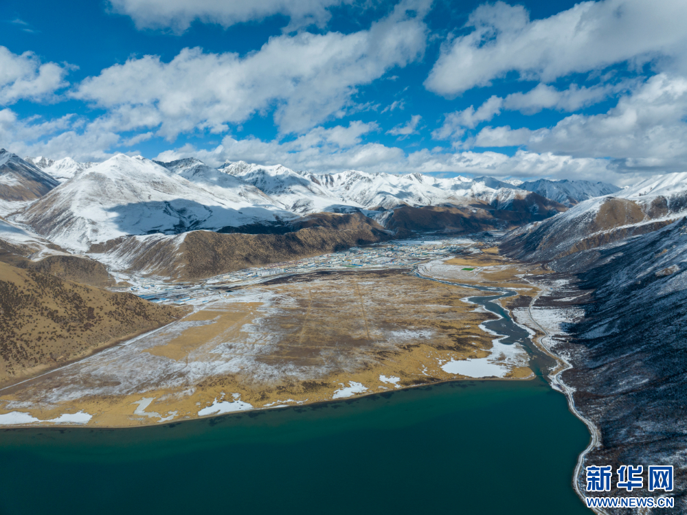 嘉乃玉錯與不遠處的嘉黎縣縣城(12月10日攝,無人機照片)。新華網(wǎng) 旦增努布 攝