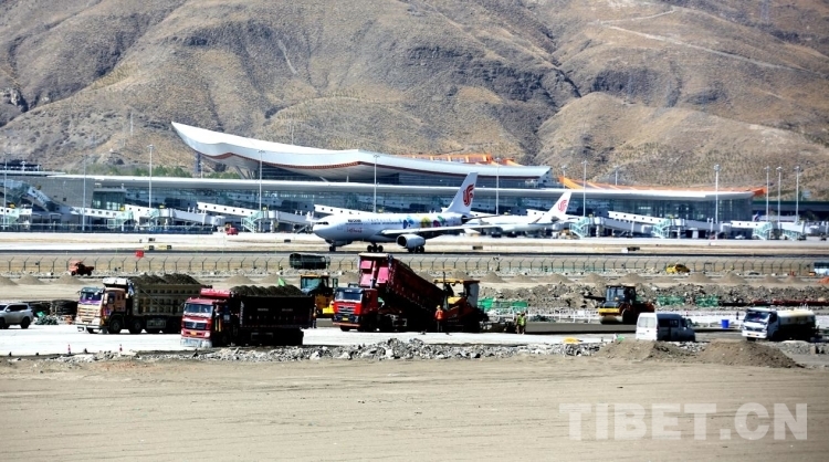 資料圖:今年4月拉薩貢嘎機(jī)場新建第二跑道工程建設(shè)現(xiàn)場