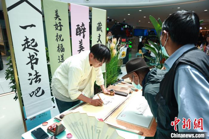 活動(dòng)現(xiàn)場(chǎng)布置了多個(gè)展區(qū),包括風(fēng)景圖片展和藏文書法展區(qū)、特色民俗文化體驗(yàn)區(qū)等,這些展區(qū)不僅展示了林芝的自然風(fēng)光和文化特色,也為民眾提供了視覺上的享受,也增添了濃郁的藏地風(fēng)情。